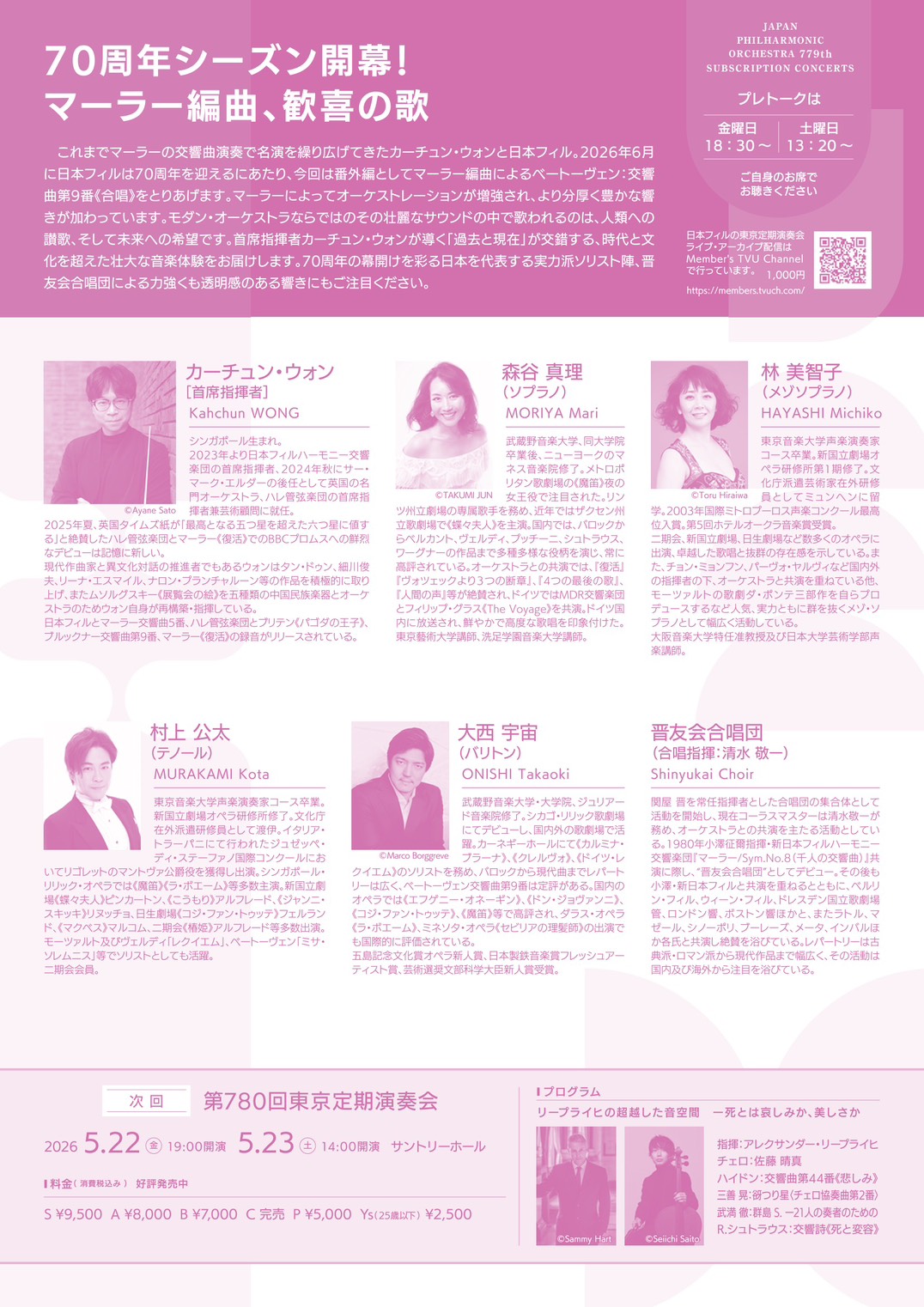 日本フィルハーモニー交響楽団|第779回 東京定期演奏会|70周年シーズンの幕開け「人類の讃歌」