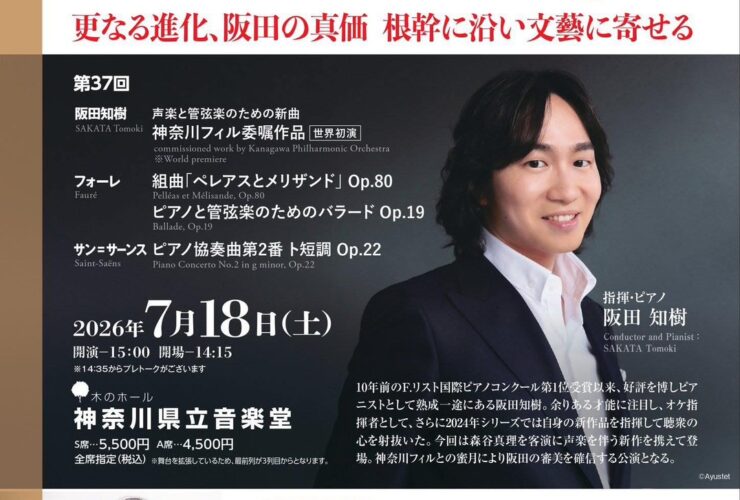 出演情報 神奈川フィルハーモニー管弦楽団 Classic Modern 37 音楽堂シリーズ 更なる進化、阪田の真価 根幹に沿い文藝に寄せる 2026 … 続きを読む 神奈川フィルハーモニー管弦楽団 Classic Modern 37【更なる進化、阪田の真価 根幹に沿い文藝に寄せる】